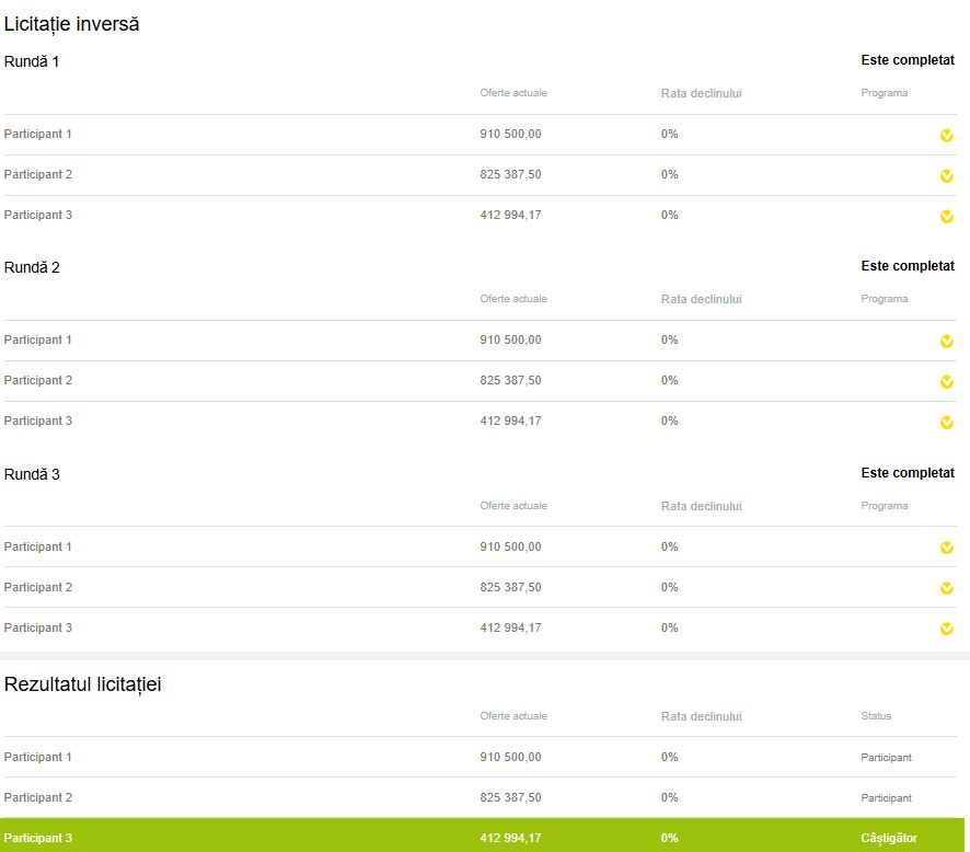 Procedura s-a desfășurat electronic. Potrivit portalului Achiziții.md, licitația electronică este publicată în Baza Centrală de Date, cu afișarea informațiilor identice pe toate platformele acreditate în sistemul M-Tender. Orice persoană interesată poate urmări licitația. Acest tip de licitație este organizat în trei runde, timp în care există posibilitatea de a schimba valoarea ofertei inițiale depuse de ofertant, în conformitate cu pasul minim de micșorare a ofertei, stabilit de Cumpărător.
