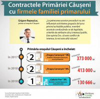 Primăria orașului Căușeni a încheiat în ultimii doi ani cu firmele administrate de soția primarului și de socrul acestuia contracte în valoare de aproape un milion de lei. Una dintre firme distrează copiii orașului, oferindu-le acces la tobogane, iar alta – prestează servicii pentru asigurarea iluminatului stradal. Achizițiile s-au făcut prin concursuri publice. Primarul susține că actele au fost avizate de Agenția Achiziții Publice și că astfel, tranzacțiile au fost calificate legale, însă a refuzat să ne ofere copiile dărilor de seamă ale concursurilor publice.