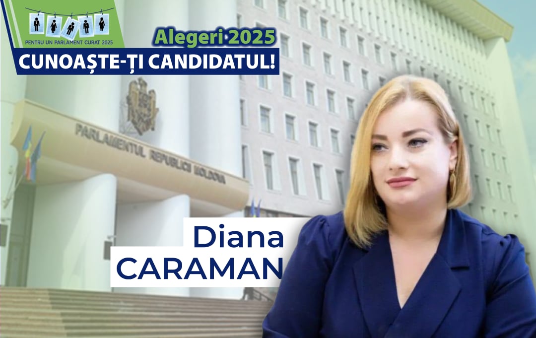 Diana Caraman (35 de ani) este candidată pe lista Blocului Electoral „Patriotic al Socialiștilor, Comuniştilor, Inima și Viitorul Moldovei”, fiind reprezentantă a Partidului Comuniștilor (PCRM). Caraman, care s-a aflat în fruntea mai multor proteste organizate de fostul Partid Șor și de exponenții grupului condus de Ilan Șor de la Moscova, este a doua în lista electorală a Blocului, devansându-l cu 30 de poziții pe șeful său de partid, Vladimir Voronin.