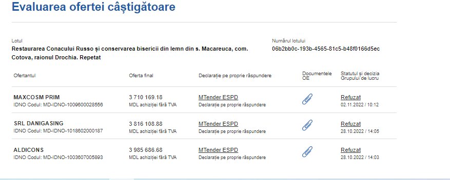 Această investigație este un produs al proiectului „Consolidarea integrității în achizițiile publice prin contribuția mass-media”, desfășurat de Asociația Presei Independente (API), în calitate de beneficiar de sub-grant a proiectului „Consolidarea integrității în achizițiile publice”. Proiectul este implementat de către Institutul pentru Dezvoltare și Inițiative Sociale (IDIS) „Viitorul", în parteneriat cu Fondul de Parteneriat pentru Transparență (SUA). Proiectul urmărește susținerea reformelor în domeniul achizițiilor publice în Moldova, care vor spori transparența și corectitudinea achizițiilor publice prin abilitarea cetățenilor de a responsabiliza instituțiile relevante. Opiniile exprimate în cadrul proiectului și responsabilitatea pentru conținutul acestui produs aparțin autorilor proiectului și nu reflectă neapărat opinia IDIS „Viitorul" și a donatorului.