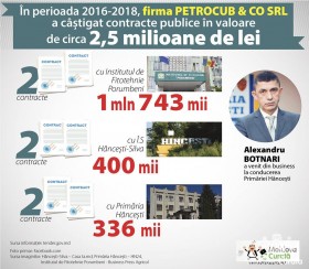 Firma PETROCUB&CO SRL, specializată în comercializarea produselor petroliere și în care are acțiuni fiul primarului orașului Hâncești, Alexandru Botnari, a câștigat în doar doi ani contracte de circa 2,5 milioane de lei la licitațiile organizate de stat. Două dintre aceste contracte, în valoare de circa 400 de mii de lei, au fost încheiate chiar cu Primăria Hâncești. Alexandru Botnari spune că aceste concursuri de achiziții au fost transparente, că el nu a făcut parte din comisia de selectare a agentului economic, ci doar a semnat contractele de procurare a produselor petroliere.
