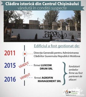 Un edificiu din centrul capitalei, înscris în Registrul Monumentelor Istorice de categorie locală, este demolat în prezent, cu permisiunea autorităților, iar în locul lui se va ridica un bloc pentru oficii. Este vorba despre clădirea în care și-a avut anterior sediul Consiliul Coordonator al Audiovizualului, situată la intersecția străzilor Mihai Eminescu și Alexei Șciusev. Deși legislația națională interzice ca edificiile cu statut de monument istoric să fie înstrăinate, prin derogare de la lege, clădirea a ajuns din proprietatea statului în proprietatea unor firme fondate de persoane cu afaceri în domeniul cărnii.