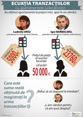 Apartamentele obținute în anul 2015 la prețuri mici (360 de euro/m.p.) de către magistrații Judecătoriei sectorului Râșcani în cadrul „proiectului Melniciuc” încep, unul câte unul, să ajungă pe mâini străine. Asta chiar dacă șeful de atunci al beneficiarilor, Oleg Melniciuc, acum urmărit penal, susținea la Primăria Chișinău că angajații săi se află "într-o stare critică în ce privește asigurarea cu spațiu locativ decent". Acum unii angajați vând apartamentele noi. Luați la întrebări, unii dintre ei refuză pe orice cale să dea explicații presei.
