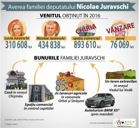 Familia deputatului democrat Nicolae Juravschi a obţinut anul trecut un venit de peste un milion 715 de mii de lei: aproape jumătate din sumă fiind salariile şi indemnizaţiile ridicate de soţii Juravschi. Cealaltă jumătate, peste 890 de lei, a fost obţinută din chiria unui spaţiu comercial situat în centrul capitalei, dar şi din înstrăinarea unui garaj amplasat în sectorul Botanica.
