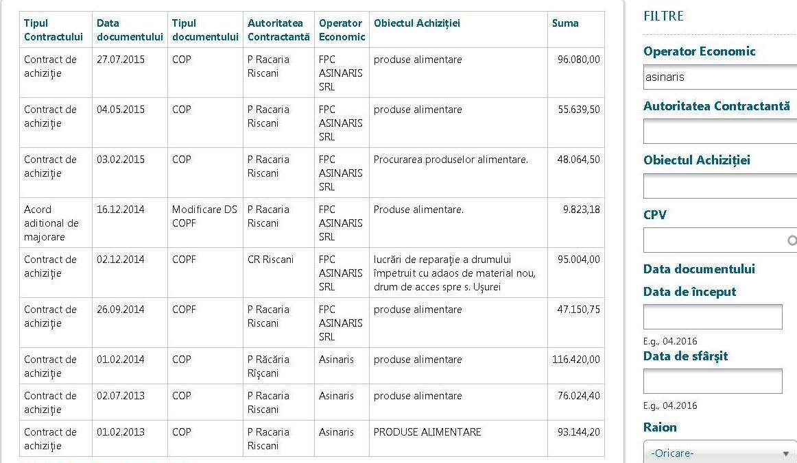 La cele 6 licitații de achiziționare a produselor alimentare, la care firma «Asinaris» a ieșit învingătoare, participau de la 2 până la 5 agenți economici. Valentina Nadulișneac ne-a spus că firma câștiga nu pentru că ea ar fi protejat-o, ci pentru că alte întreprinderi refuză să participe. «Nimeni nu vrea să participe la aceste licitații pentru că este vorba despre cantități mici. La noi totul e în regulă cu documentele. Da, eu sunt fondator la această întreprindere, dar ea face ceea ce nu fac alții. În proporție de 30 la sută prețurile sunt mai mici decât cele propuse de alții», a precizat Valentina Nadulișneac.