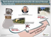 Drumul până la casa în care locuiește actualul deputat Ghenadie Buza a fost construit recent din banii destinați întreținerii mai multor drumuri ale raionului Hâncești. Toamna trecută, când Ghenadie Buza încă era președinte al acestui raion, Consiliul raional a anulat o finanțare de aproape 400 de mii de lei pentru drumurile din raion, direcționând banii spre construcția străzii G. Enescu din orașul Hâncești. Pentru că această sumă nu era suficientă, o altă parte din bani a fost luată de la capitolul privatizarea unor clădiri. Ghenadie Buza a refuzat să comenteze faptele stabilite de Moldova Curată.
