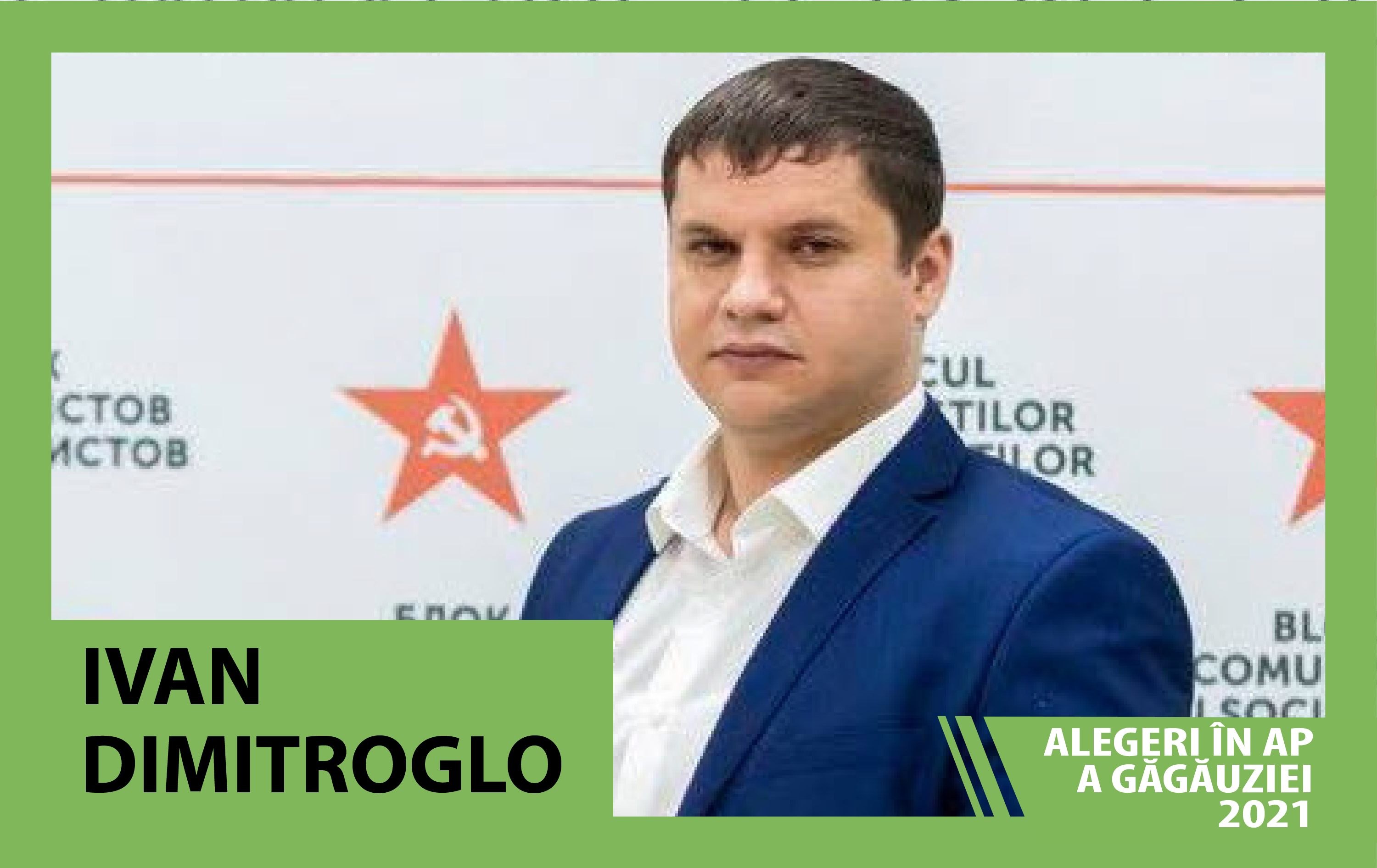 Ivan Dimitroglo candidează pe circumscripția nr. 4 Comrat ca reprezentant al Blocului Socialiștilor și Comuniștilor. Are 28 de ani și de profesie este jurist. În anul 2019 a devenit consilier municipal la Comrat pe lista socialiștilor.