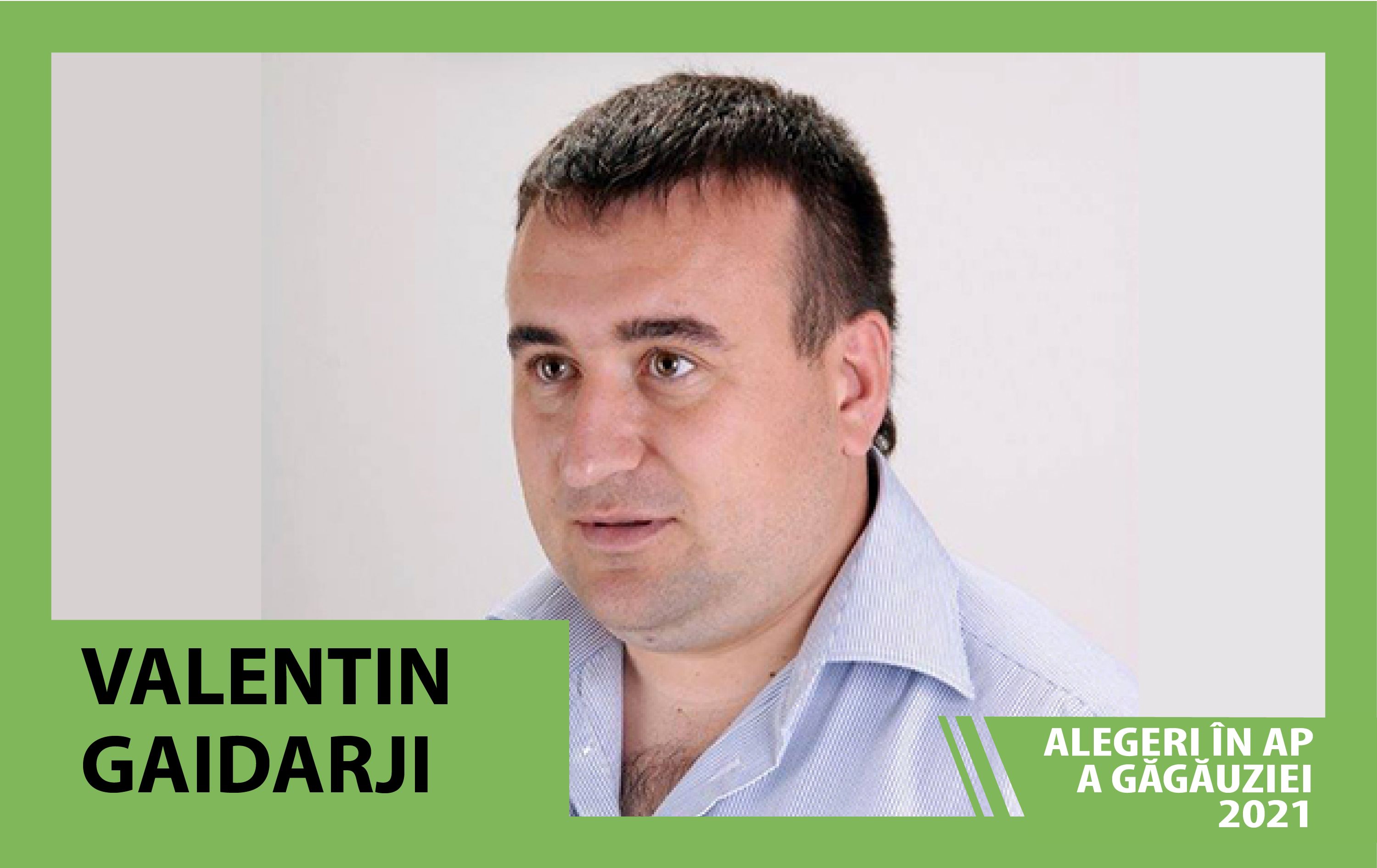 Valentin Gaidarji este inginer de profesie și candidează pe circumscripția nr. 23 din Carbalia (raionul Vulcănești). Candidatul are 37 de ani, iar la aceste alegeri este înscis pe lista Partidului Acasă Construim Europa (PACE). La alegerile parlamentare din regiune din anul 2012, dar și la cele din anul 2016, Gaidarji a candidat independent.