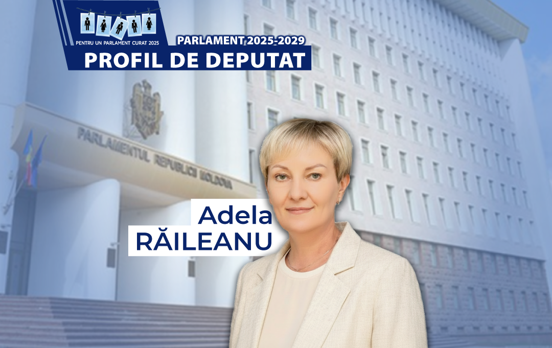 Adela Răileanu (50 de ani) este deputată în fracțiunea Partidului Socialiștilor din R. Moldova, aleasă pe lista Blocului Electoral „Patriotic al Socialiștilor, Comuniștilor, Inima și Viitorul Moldovei”. Născută în s. Târșiței, r. Telenești, Adela Răileanu este jurnalistă de meserie. Ea și-a făcut studiile la școala medie din satul natal, iar ulterior a învățat la Liceul nr. 2 din Chișinău și la Facultatea de Jurnalism și Științe ale Comunicării de la Universitatea de Stat din Moldova, pe care a absolvit-o în 1996. Între 2006 și 2009 a făcut un master în Relații Internaționale la Academia de Administrare Publică.