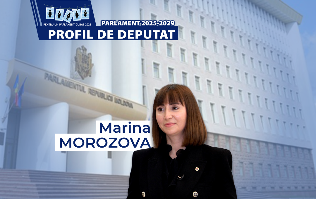 Marina Morozova (44 de ani) este deputată în fracțiunea Partidului Acțiune și Solidaritate (PAS), fiind la al doilea mandat consecutiv. Este vicepreședintă a Comisiei protecție socială, sănătate și familie. Potrivit unui CV publicat de pagina web a Parlamentului, Marina Morozova a absolvit în 2006 Universitatea Pedagogică de Stat „Alecu Russo” din Bălți, luându-și licența în pedagogie, apoi a obținut un master în administrarea afacerilor la Academia de Studii Economice din Moldova (2009). Ulterior (2014) a obținut și un master în Științe Politice, specializarea Relații Internaționale, la Academia de Administrare Publică.