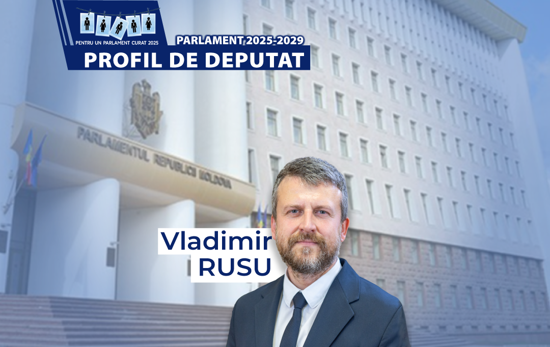 Vladimir Rusu (42 de ani) este deputat din fracțiunea Partidului Acțiune și Solidaritate (PAS). Este la primul mandat și face parte din Comisia juridică, pentru numiri și imunități. Locul său de muncă precedent, înainte să devină deputat, a fost Oficiul Teritorial Bălți al Cancelariei de Stat, unde a fost șef începând cu luna decembrie 2021.